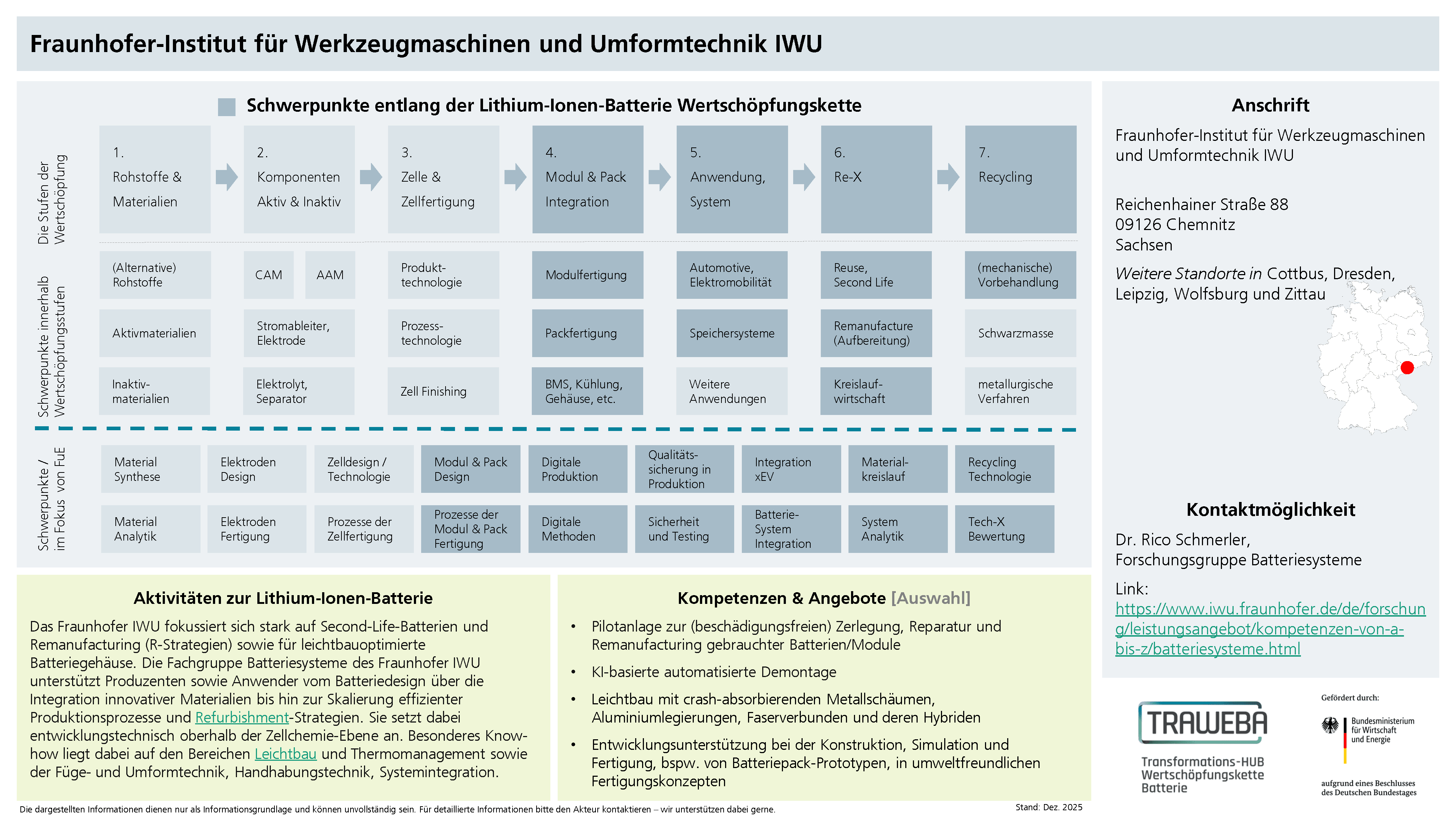 Das Fraunhofer IWU ist Mitgliedsinstitut in der Fraunhofer-Allianz Batterien und trägt damit einen entscheidenden Beitrag zum Batterie-Ökosystem der Fraunhofer-Gesellschaft bei.