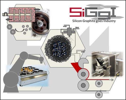 Das Projekt SiGgI (Silicon-Graphite goes Industry) adressiert diese Technologie und hat zum Ziel, die Schnittstelle zwischen Labor und industrieller Umsetzung abzubilden. Dafür ist neben der Materialentwicklung von Silicium-Graphit-Kompositen, welche im Fokus des Projektes stehen, auch eine hochreproduzierbare Testzellenfertigung notwendig, welche die Streuung der manuellen Testzellenassemblierung reduziert und somit die Auflösung sehr kleiner Effekte ermöglicht. Dieses Ziel wird im Projekt durch eine zu entwickelnde vollautomatisierte Testzellenfertigung umgesetzt, welche mit entsprechender Messgrößenaufnahme zur kontinuierlichen Prozessüberwachung kombiniert wird.